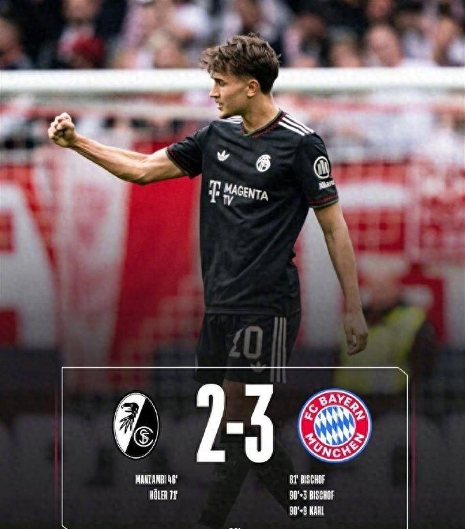 让二追三读秒绝杀!拜仁3-2弗赖堡,比朔夫双响+卡尔99分钟制胜,德甲悬念终结?